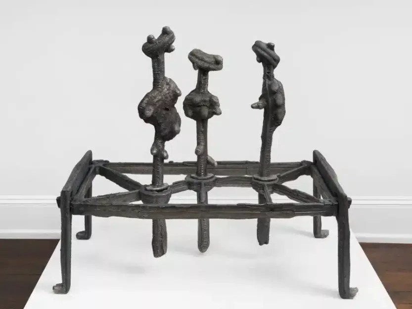 William Corwin’s “Things: Wheels, Ladders, Teeth, Alps, Gods, Boats, Etc.” at Geary in Millerton is a sculptural séance with the past. Spanning a decade of cast metal works, the exhibition conjures ancient tools, mythic vessels, and symbolic forms—each piece a tactile meditation on the evolution of meaning. Corwin’s process involves hand-working sand molds, allowing for spontaneous textures and gestures to imprint directly onto the metal. His recent focus on the goddess Artemis intertwines classical depictions with references to Fritz Lang’s Metropolis and Paleolithic figurines, creating a dialogue between antiquity and modernity. This is Corwin’s fifth exhibition with Geary