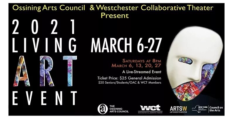 The Ossining Arts Council and Westchester Collaborative Theater will present the 2021 Virtual Living Art Event, which showcases seven original WCT one-act plays inspired by selected OAC artworks. The series will be livestreamed on March 6, 13, 20 and 27 at 8pm and features paintings and sculptures by Keith Gordon, Phyllis Kirigin, April Freeman Locke, Ted Berkowitz, Peg Tarnosky, Louise Belevich, and Jill Kiefer; seven original plays directed by Christopher Arena; and performances by Amy Lowenthal, Torian Brackett, Michael Meth, Dante De Leo, Enid Breis, Lorraine Federico, Roberta Robinson, Rob Ansbro, Sasha Murray, Ava Purcel, and Joanna Fernandez. Tickets are $25 general admission and $20 for seniors and students.