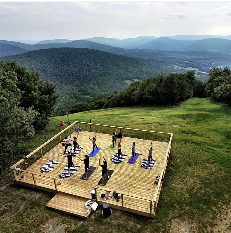 In 2017, the North Face had reached out to Reed, a Delhi-based fitness instructor and owner of The Cardio Club and Delhi Dance Studio, about hosting a yoga retreat for its employees on Plattekill Mountain in Roxbury. The event fell through due to weather, but in the process Reed was struck by just how perfect the locale—which came complete with a spacious mountaintop platform used for weddings and other events—was for hosting classes.