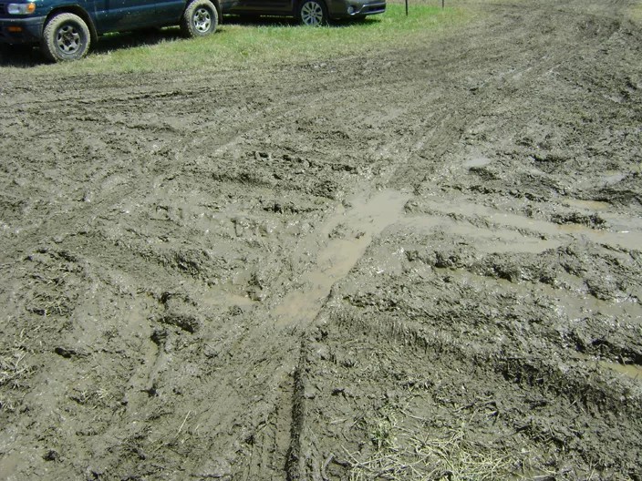 A muddy intersection… we must have crossed this dozens of times. Credit: Rachel Carey