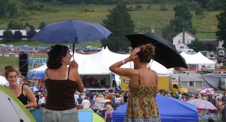 KellyAnne and Rachel enjoying the first sunny day in weeks at the Falcon Ridge Folk Festival. Credit: Rachel Carey