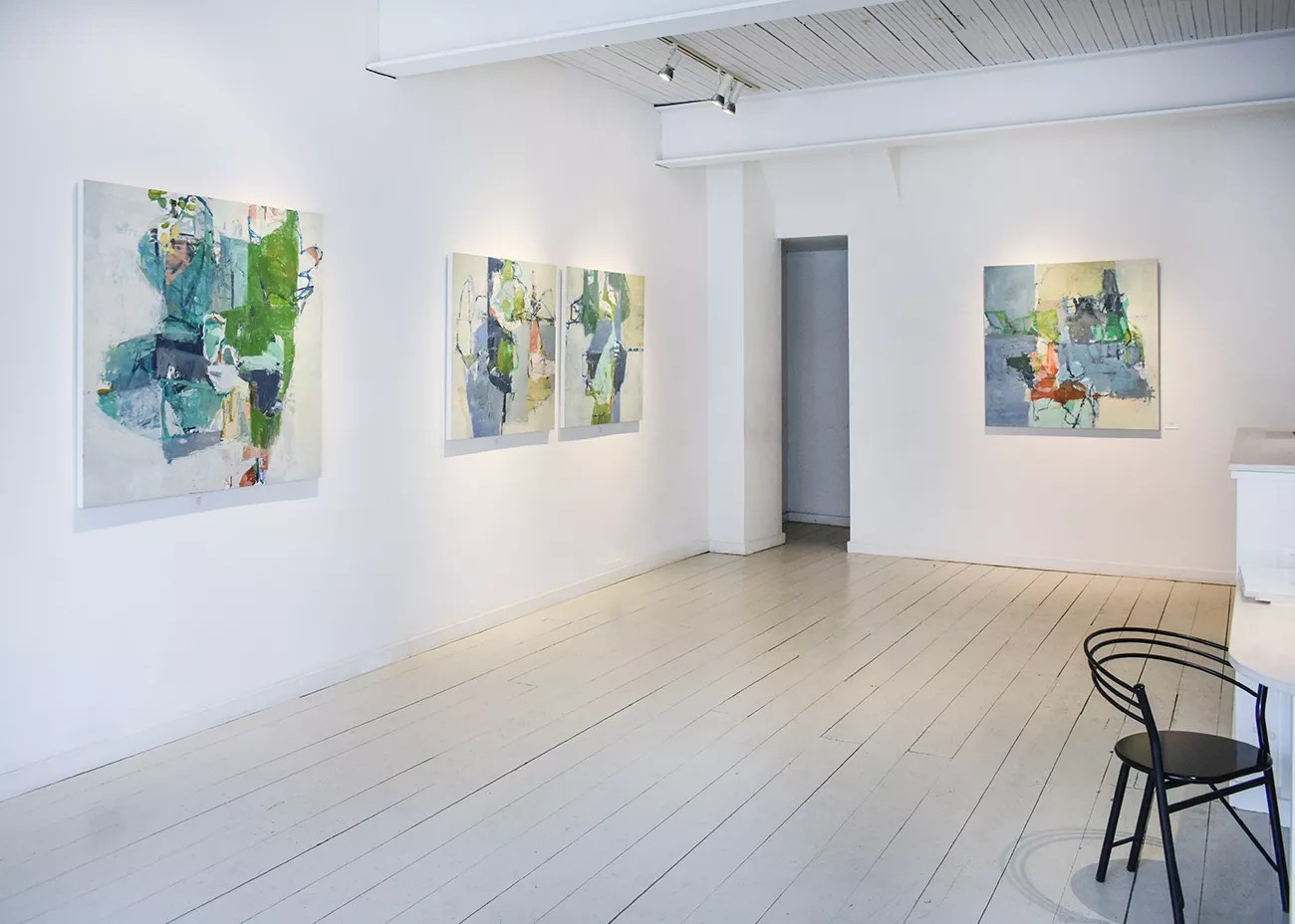 Woodstock-based painter Jenny Nelson brings a long history of drawing to the canvas, which informs her sense of space, structure, and color relationships. Beginning with an extensive palette of custom-mixed colors, Nelson makes use of brushes, palette knives, and oil sticks to cover the canvas in semi-intuitive, semi-impulsive bursts of color. โThis process leaves me feeling quite lost a lot of the time, and I have had to learn to become comfortable with that feelingโ Nelson says.