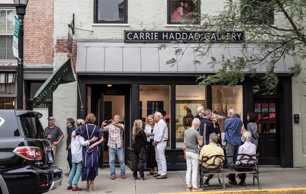 In her second year, Haddad helped found the yearly ArtsWalk, which installed art in many of Warren Streetโs empty storefronts. A fixture of the decade-long event was the artwork she would exhibit from local students, which helped bring families to Hudson to visit. โIn that way I think we really did encourage art appreciation in the community,โ she says. Two years later, the newly renamed Carrie Haddad Gallery relocated just a few blocks east to 622 Warren Street, where its home has been for the past 27 yearsโa stable presence among the cityโs explosive growth.