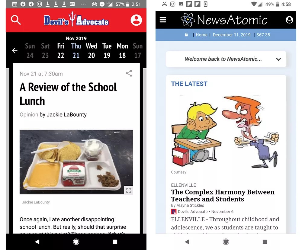The Devil’s Advocate (Ellenville’s sports teams are the Blue Devils), a free app with student-written content, has been downloaded by at least 270 people. One story a week is printed in the Shawangunk Journal. “Last year there were 10 of us, this year there are seven,” Shiffer says. “We meet once a month and have a group chat where we get stuff done. Students talk about it, even teachers talk about it—we did a series of teacher interviews last year and they all really got into it. I love reading the comments, and when people come up to me in person with reactions. We get all kinds of feedback.”