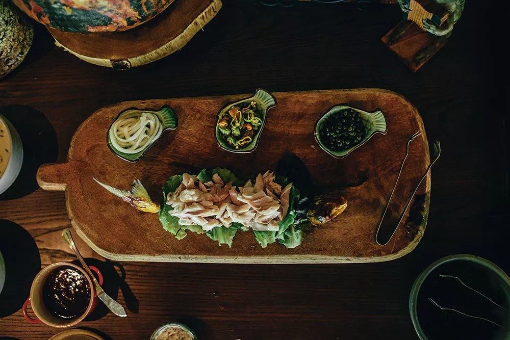Thursday through Sunday, when afternoons of hiking and lawn games wrap, the in-house restaurant opens for business. That’s where we find Tate again, running the show in the kitchen.