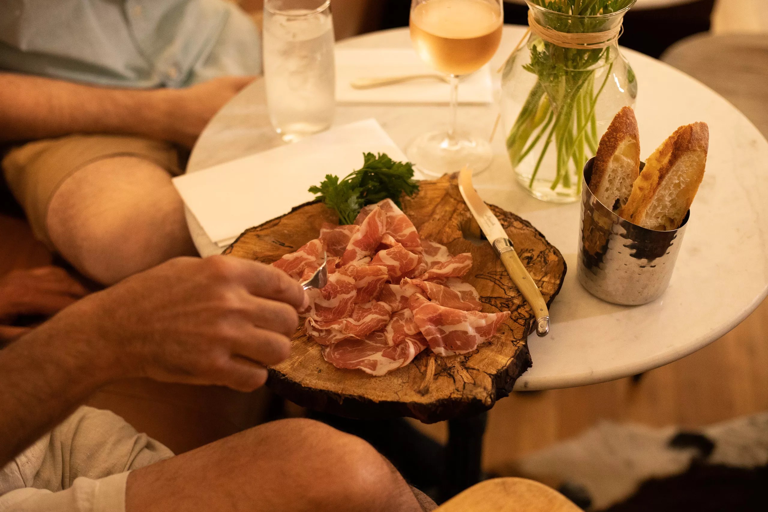 Like several places in the waterfront city, Hudson Roastery feels like a little slice of Europe. The combination coffee shop and wine bar is modeled after businesses that Carolyn Palmieri, owner, and her husband Tony Calderone found abroad. Offering coffee and croissants in the morning then transitioning to wine, cheese, and charcuterie in the evening, Palmieri has brought the quintessential Old World dining experience stateside. โWe traveled in Europe extensively, and thatโs how it is, everywhere,โ Palmieri says. โWe felt that it was missing.โ
