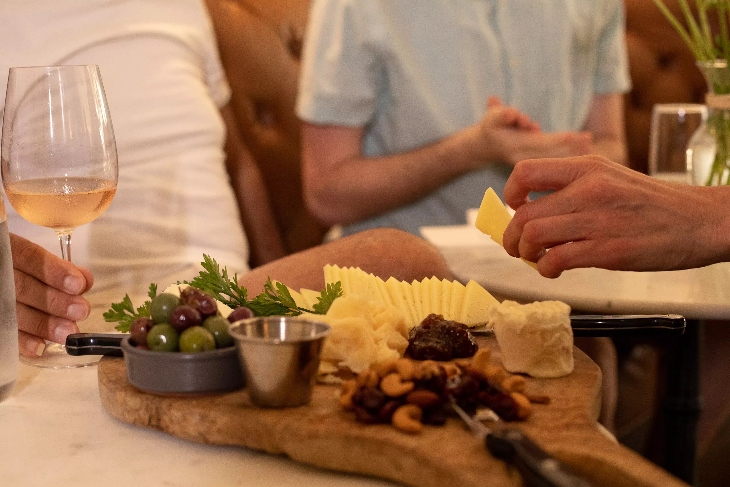 Hudson Roastery is reminiscent of a French bistro or a train station cafรฉโโcasual and modest, but distinctive. Palmieriโs intent was to have customers โfeel like theyโre anywhere in the world.โ Somewhere along the bar, which extends into the back of the cafรฉ, coffee transitions into wine. โWe convert the mood of our space into a wine bar by 2pm, Wednesday through Saturday,โ she says. Ten of Hudson Roasteryโs wines have a permanent spot on the menu, while the rest rotate regularly. To pair with the wine offerings, Hudson Roasteryโs cheese and charcuterie board is an affordable $18. โWe feel like our place is for everybody. Itโs not pretentious,โ Palmieri says.