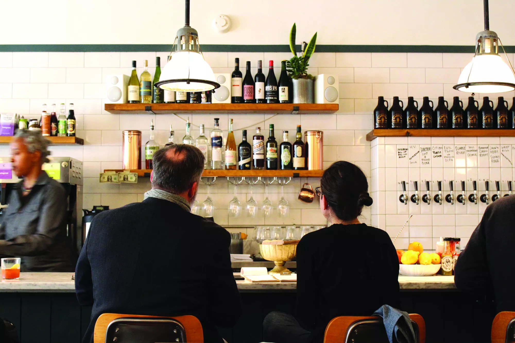 From 11:30am to 11pm, thereโs a variety of sandwiches available (both meat and vegetarian $8-$11), along with a soup of the day, cheese and charcuterie, and a salad. Quint promises to roll out more dinner-type options as specialsโlike spaghetti and meatballsโin the coming weeks. Crimson Krier-Glading, a veteran of Park Slope craft beer mecca Mission Dolores, is the bar and service manager at Kingston Bread + Bar, and developed its beverage program. Her goal is to curate tipples that pair well with Quintโs food. The main focus is craft beer, with 12 rotating taps, in addition to two ciders, kombucha, and cold brew coffee on tap. Kingston Bread + Bar is also serving small pours of spirits from a rotating selection of 12 bottles (16-year-old Lagavulin and Coppersea Distilleryโs Springtown whiskey currently among them), as well as wines by the glass and bottle.ย
