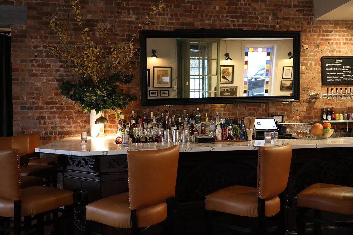 After talks with the landlord of the China Rose space proved fruitful, Dorsey leased the restaurant in March 2022 and embarked on a seven-month renovation project, installing a new kitchen, new bathrooms, a glow-up to the two cozy dining rooms, and stripping the red paint off the bar and re-topping it with marble. The space is now clean-lined and bright but unfussy, letting the hundred-year-old building’s delightful idiosyncrasiesโlike stained glass double-doors leading out onto the patioโremain. “The place spoke to me,” he says, “it has character and charm.”
