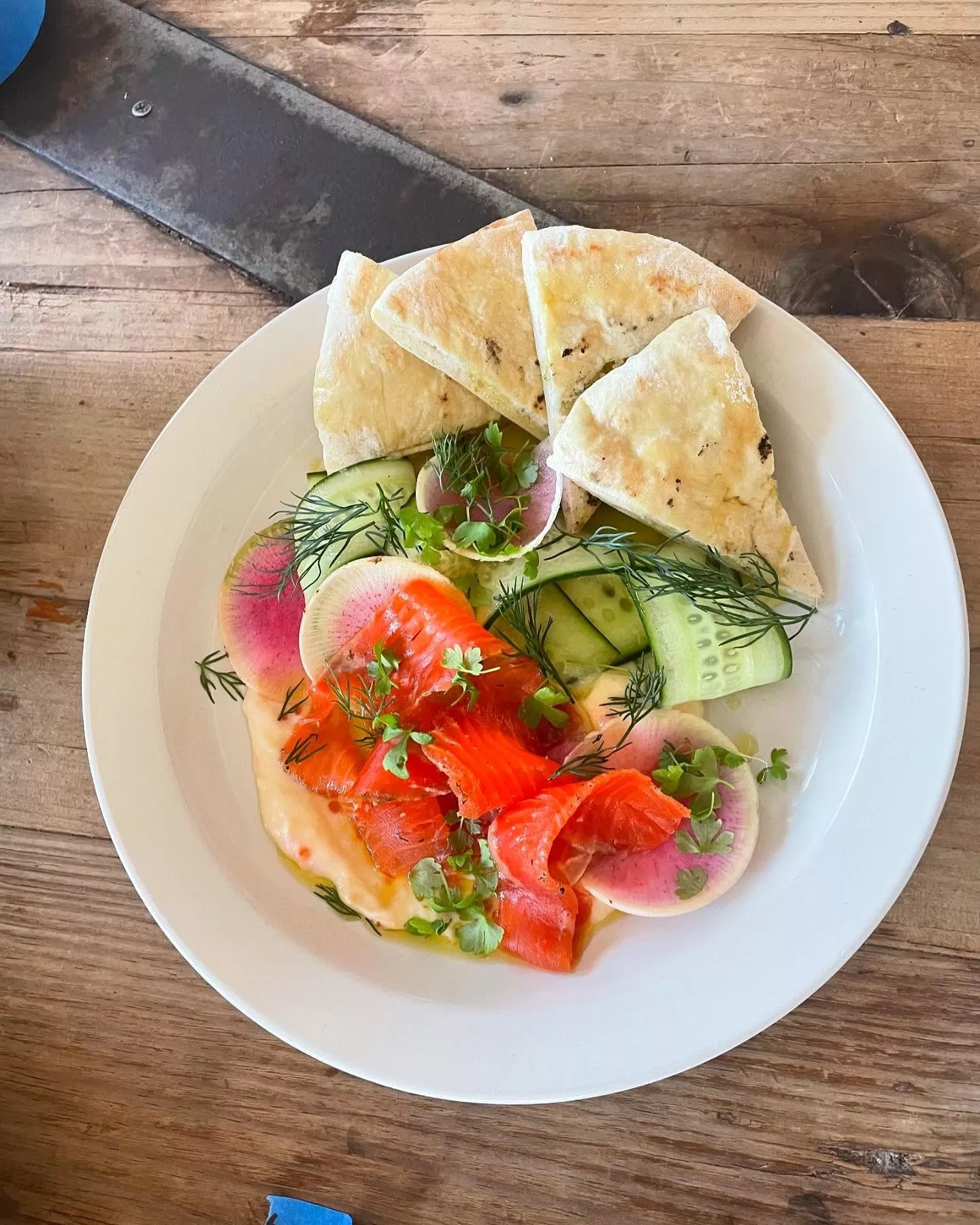 Phos is at home in the in-between. โI call it my Greek-American Kitchen so that we have some room to work with the ingredients,โ Skiadas says. This is precisely what our waiter was touching on when he warned us that it was not a traditional Greek salad ($16) we were ordering. Instead of the better-known version loaded with tomatoes, this one features a seasonal base of leafy lettuce and radishes, too, since tomatoes arenโt in season. โOh, and are you ok with anchovy?โ he asked, to which we excitedly assured him we were.