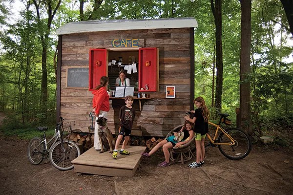 Johannessen, 48, who grew up on a Stone Ridge goat farm and has a master’s degree in language-arts teaching from Bard College, was influenced by her extensive travels in Asia. “It’s very common to find little cafés on trails or in remote places there,” she says. She also was informed by childhood memories of a beloved Marbletown Park concession stand whose Italian ices and corn dogs tasted particularly delicious after a dip in the Esopus Creek.
