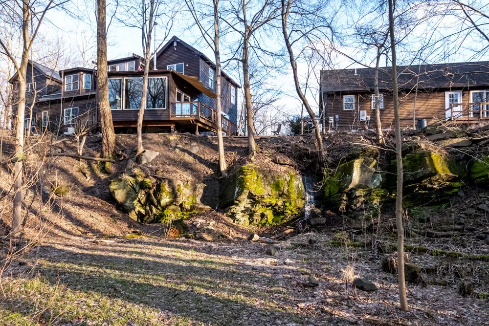 By consensus, Friday evenings on Cantine’s Island are a jolly affair. Each week, from 5 to 6 pm, residents of the cohousing community gather for happy hour—one of many regular get-togethers designed to strengthen the bonds of this flourishing intentional community which is one part lifestyle, one part old-fashioned neighborhood. Sharing almost 10 quiet acres enveloped by a meander of the Esopus Creek, the community’s 19 privately owned homes, as well as commonly owned outbuildings and green spaces, were designed to strike a balance between privacy and interconnection.