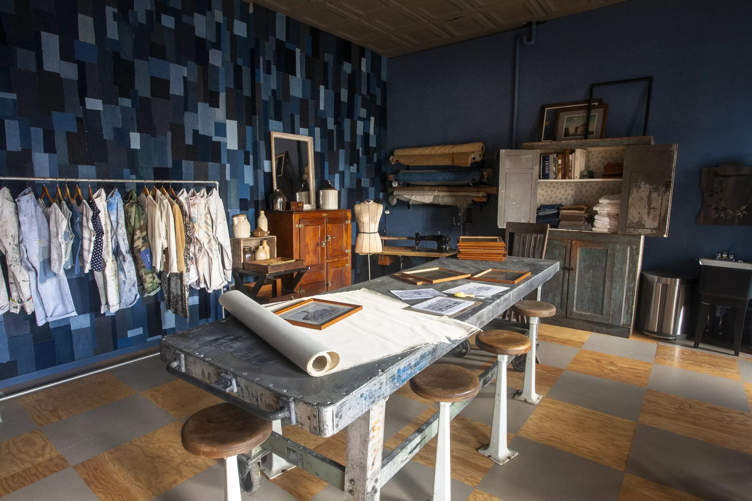The workshops, like the bolts of fabric in the corner and the floor-to-ceiling patchwork wall of salvaged denim scraps donated by Cone Denim, where Lane’s grandfather rose from merchandiser to vice president, all speak to the core tenets of Lane’s approach: durability and sustainability.