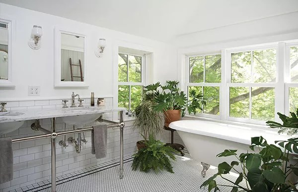 Upstairs, the space that once topped the porch was transformed into a family bathroom with clawfoot tub and large linen closet. They expanded the space above the pantry into the attic, creating an arched bedroom for their daughter. An additional bathroom was added, and the three original bedrooms complete the upstairs.
