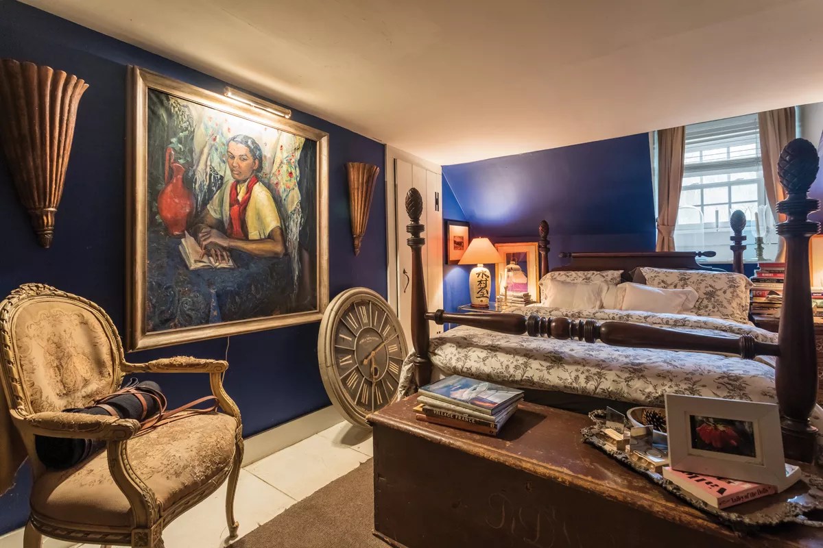 McBride left Ross with some of the home’s historic furniture and Ross has added some of his own antique furniture and art. He also framed and hung historical documents passed along by the McBrides. In one of the guest bedrooms, a carved chest was owned by Rachel Dewitt—the aunt of the New York governor DeWitt Clinton—a memento of the time when the Dewitt family lived in the house.