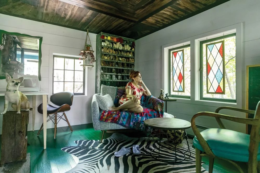 Living on the Upper West Side of Manhattan and working in the magazine industry while crafting on the side, Facci decided she needed a tranquil refuge that could also serve as a creative outlet. “Crafting is just a way of life for me,” she explains. “My mind is always thinking of things I can make.” She had begun exploring upstate and soon realized that Woodstock sat at the perfect intersection between mountains and quirkiness. “I always wanted a house in the country,” says Facci. “I thought I’d wait for someone to come along and we’d do it together, but he never came along.” So, in 1999, she decided to do it herself, buying a place in the center of town, an area she loved for its proximity to wildlife and the funky village character (and characters). She fixed it up herself and became an official weekender, enjoying the local nightlife and making friends.