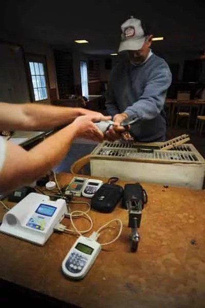 It is late morning on Saturday, April 30, the first race of Old Bird pigeon racing season, a 150-mile short course that starts in Watkins Glen and heads east back to the Hudson Valley. Somewhere, hundreds of pigeons are on the wing: white, gray, striped, checkered, silver, red, chocolate brown, and slate. They weigh from 10 to 14 ounces apiece and can fly average speeds, depending on the wind, of over 50 miles an hour. They have eyesight so sharp, they can spot a specific treetop from pin high in the sky, and an athletic ability to precisely maneuver with the shift of a feather. They trace back to distinguished European families with names like Mueleman and Janssen, though they have existed, and have been genetically bred to fly faster and farther since ancient Egypt. Each wears an ID band on its leg with initials and a unique number, like AU2009NCC323, which stands for the American Racing Pigeon Union, born 2009, Northern Catskills Club (NCC), number 323. That happens to be the band of the pigeon that will win this race.