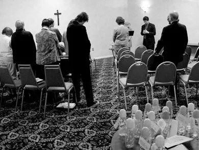 An occasional stiletto-heeled blonde and green-haired teen accentuated an otherwise conservative audience of families, church groups, and volunteers. All stuck to chaste pitchers of iced tea set out on the tables. Some teens, donning black, baggy pants and piercings, began gathering outside the hotel before coffee was served, while their more-carefully coiffed peers, in pantyhose or shiny loafers, stayed at the tables bouncing siblings, or perhaps children of their own, on their laps.