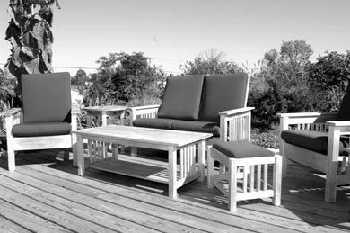 Fair trade plantation-grown teak arrives to the Gardiner manufacturer direct from global destinations (see sidebar) in rough-milled pallets. Milled to smooth-touch precision in the Wood Classics’ machine shop, it is then cut into various shapes that that are assembled in a warehouse adjoined to the offices and showroom. Touring the humongous combined assembly plant and shipping-distribution center (the size of two airplane hangers) is like walking through a teak forest. Jigsaw pieces of wood sorted by shape and function are stacked several stories high in neat, uniform piles, and cover a good portion of the warehouse. In the most open area, a typical artisan’s workstation is outfitted with handheld tools—cordless power drills, rubber mallets, metal bar clamps, and bottles of weatherproof glue. Construction includes true mortise and tenon joinery—dovetail joints made with square pegs in square holes for greater strength. Every screw hole is recessed and pegged to prevent contact with moisture. Occasionally, Wood Classics does repairs, such as when a tree falls on a piece of furniture or (as in a recent case) when a bear tears an outdoor furnishing apart.