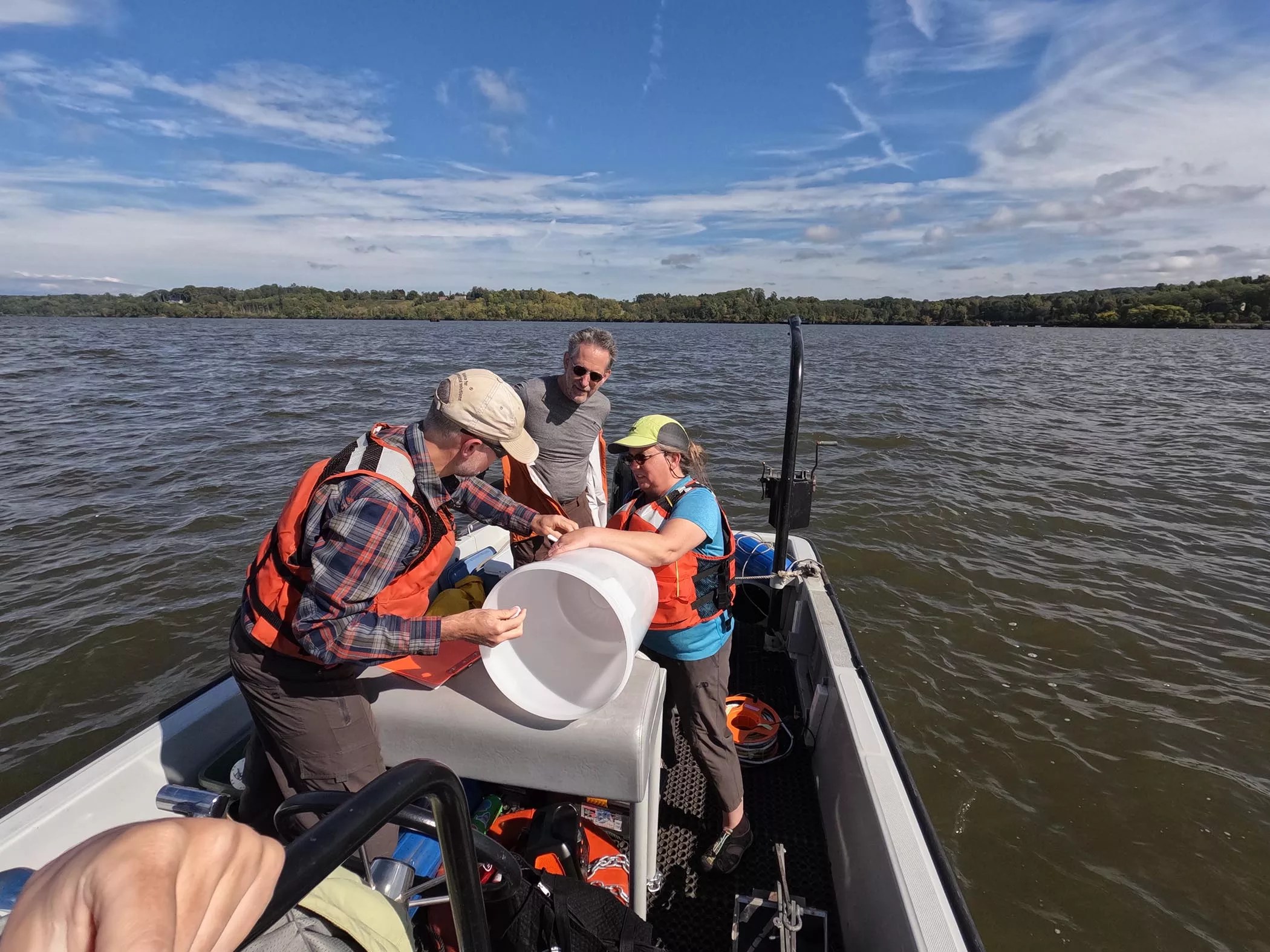 Environmental DNA (eDNA) is among these groundbreaking techniques. The process identifies DNA from organisms in the Hudson, using cellular material shed into the surrounding water. This method allows for monitoring without needing to collect samples directly from the organisms. Current eDNA applications enable the early detection of invasive species in water samples, often before they can be seen or trapped in large numbers in nets, giving organizations a chance to intervene, as well as monitoring submerged aquatic vegetation (SAV)—plants that are always underwater. Monitoring systems and organizations collect water samples, filter them to capture DNA shed by plants in the water column, then analyze the DNA in a lab to identify which species of aquatic plants are present. This allows researchers to assess the health and abundance of SAV without directly observing the plants themselves; it is noninvasive and can be used to detect even low densities of vegetation.