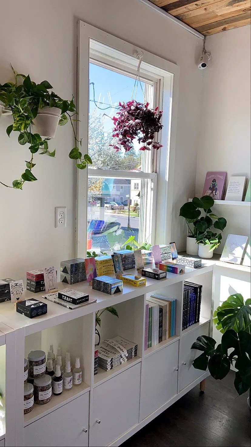 After embarking on a new path, Cooper began working in retail at a plant store and a flower shop. Both of the spaces were beautiful and well-curated, and customers would come in and tell her so. They commented on how welcomed they felt, and it got her thinking about how a physical environment can facilitate “magical experiences.” That train of thought planted the seed of Cooper’s desire to open her own shop as a way to share some of the things that were helping her at the time. “It was a way to create this physical place that people could step into and feel at home, welcome, and free to be themselves,” she says.