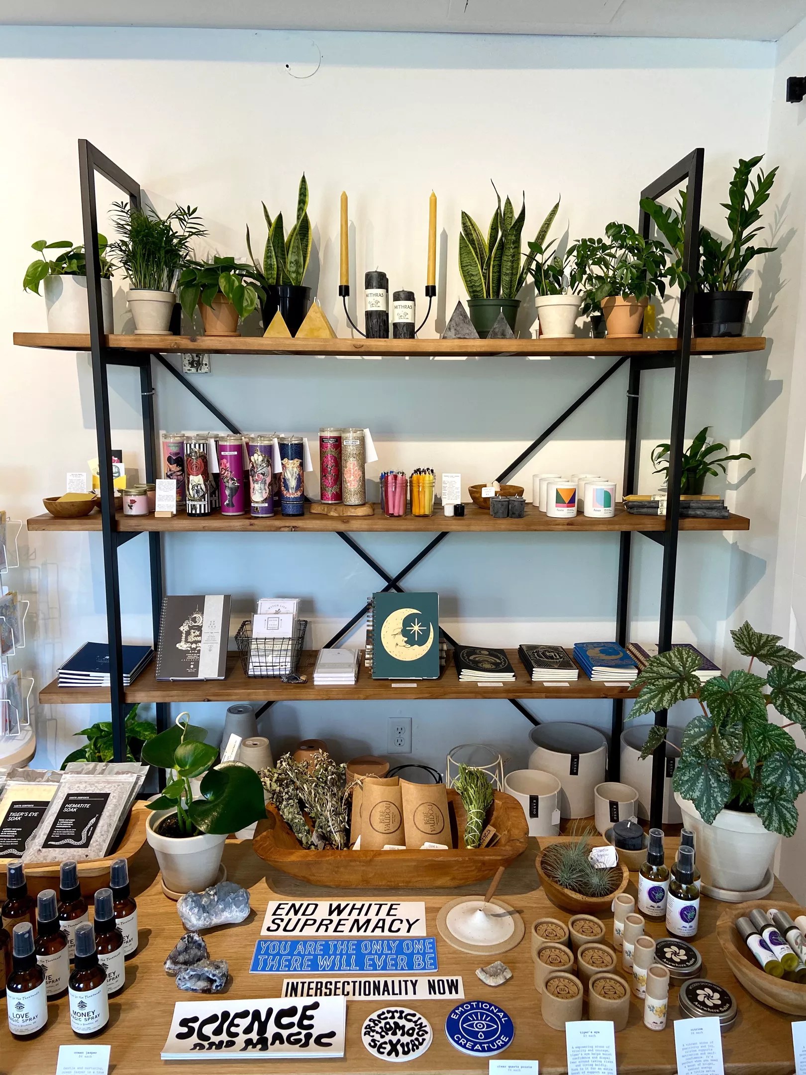 She saves the packaging of incoming products for outward shipping, uses recycled goods, and avoids buying herbs that are over-harvested, such as white sage. Customers can come into the shop and see themselves represented there in products made by BIPOC, queer, and trans makers. She makes sure to stock products made by Black creators and constantly educate herself on antiracism. She also commits to giving 10 percent of net revenue each month to an organization that uplifts marginalized communities. This month it’s Intersectional Environmentalist.